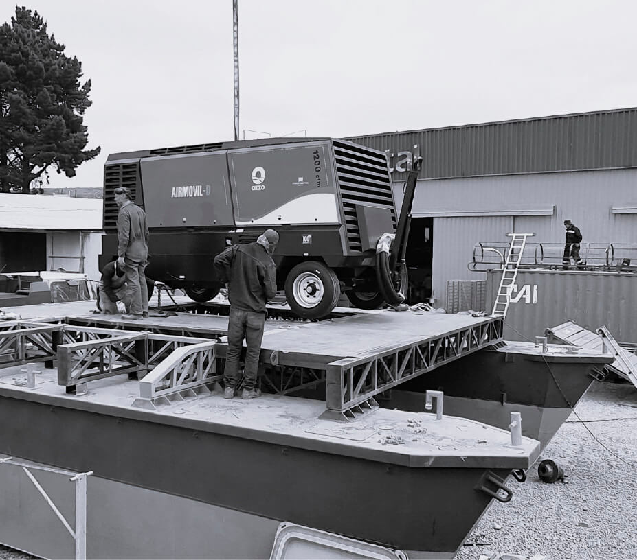 San Aurelio dispone de activos e infraestructura que nos capacitan para realizar adaptaciones de esta categoría. La transformación de un catamarán en una plataforma para gas natural.